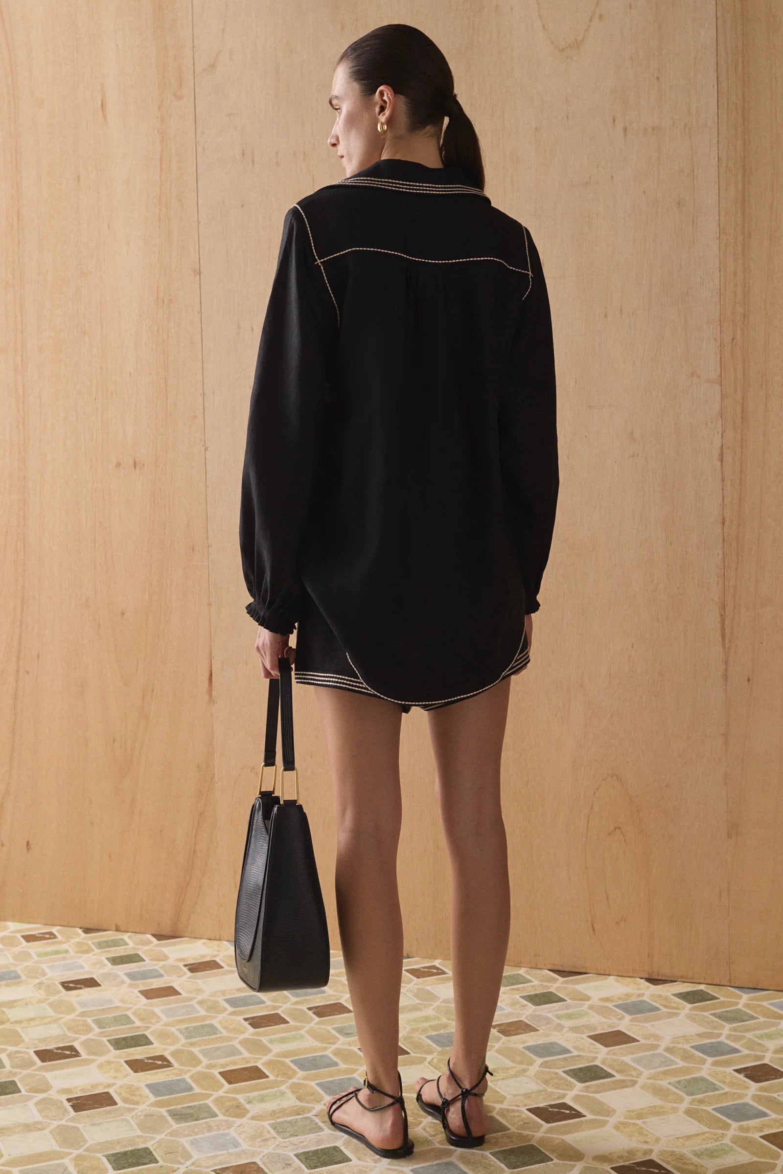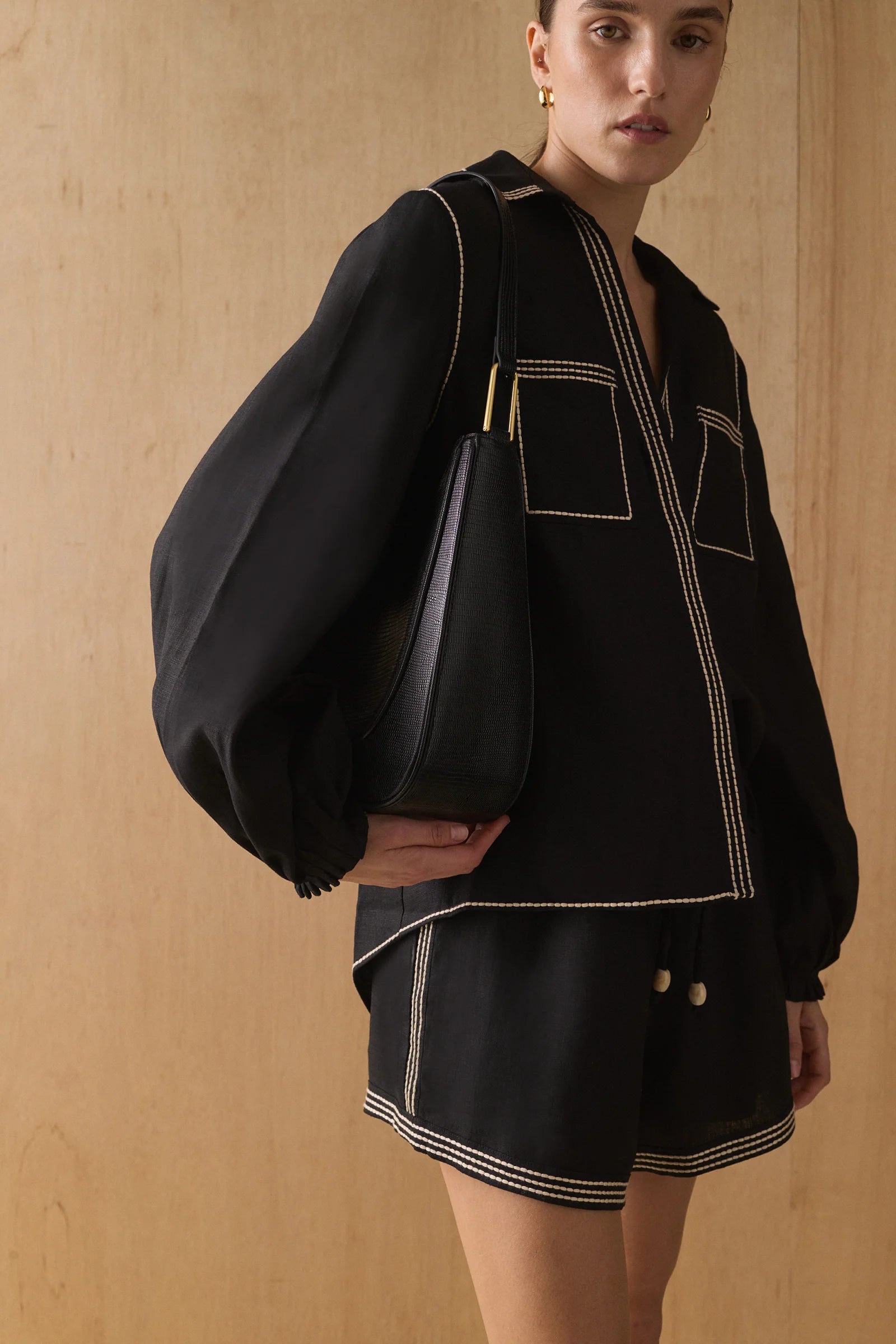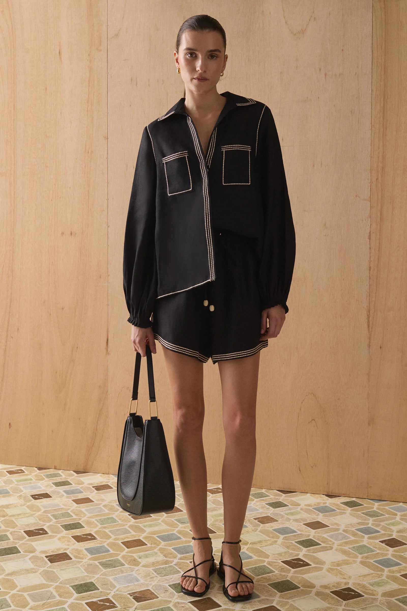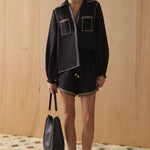 Our Sabrina Shirt is a timeless, effortless piece that can be worn through daytime to night-time. Cut from luxurious natural materials and carefully detailed with contrast topstitching, it's the perfect staple item to add to any wardrobe this season, especially when paired with the matching Raye Shorts.