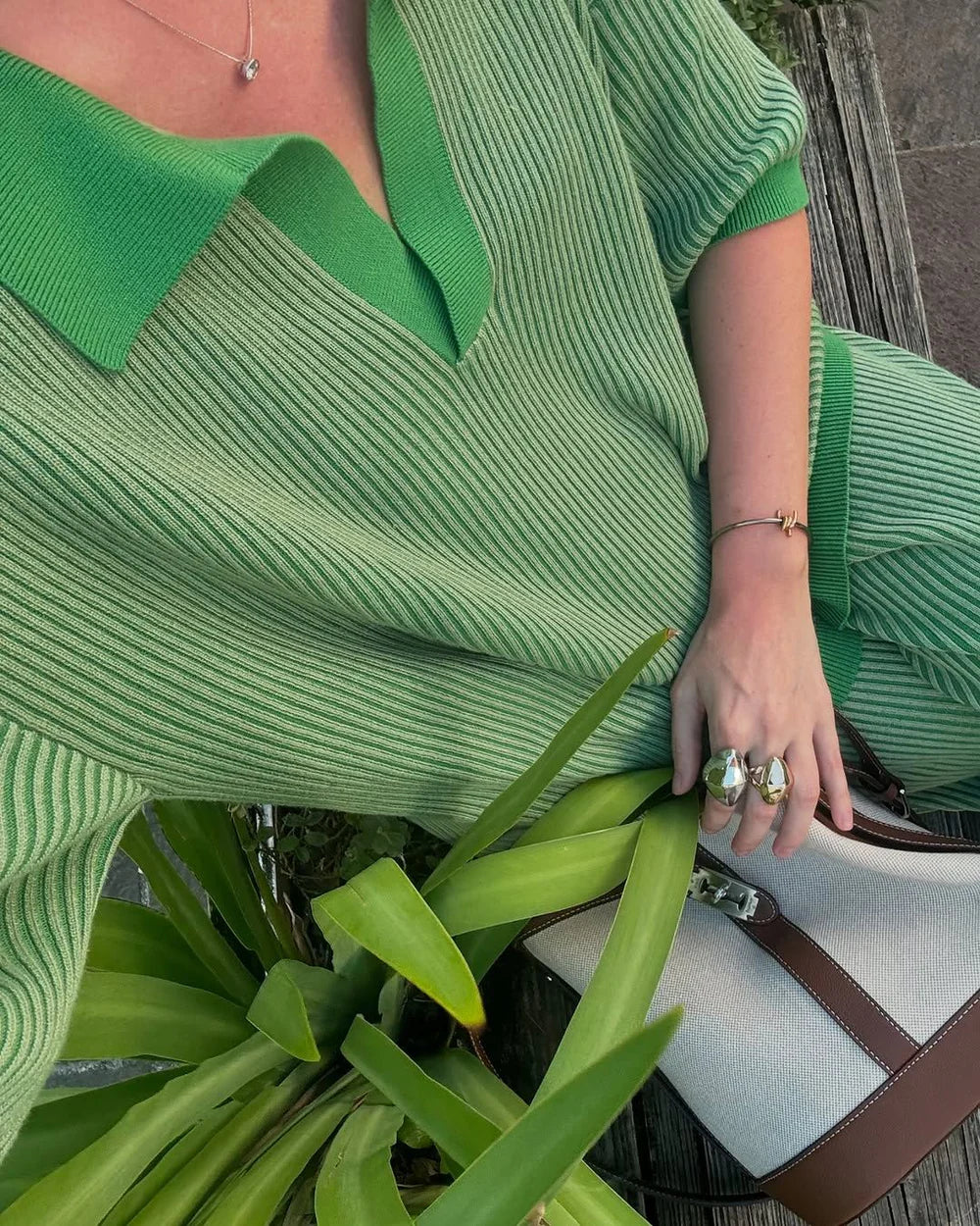 There are a few pieces that belong in every closet and a relaxed fit, knit polo is one of them. The Serin Top is a beautifully made staple featuring an elegant polo collared neckline, a V-neckline and oversized short sleeves. The soft boxy garment is perfect for a relaxed day indoors or lounging by the ocean. Wear with anything from jeans to a short or as the cutest set with the Ceilia Pant.