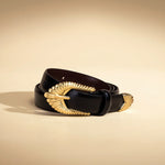Inspired by beautiful blooming petals, the Zolna Belt is crafted to bring a statement to any outfit. The brushed gold buckle and belt end were custom designed in-house. SANCIA's belts are made to be worn season to season, so get creative with your styling and cherish this piece for years to come.