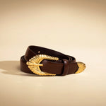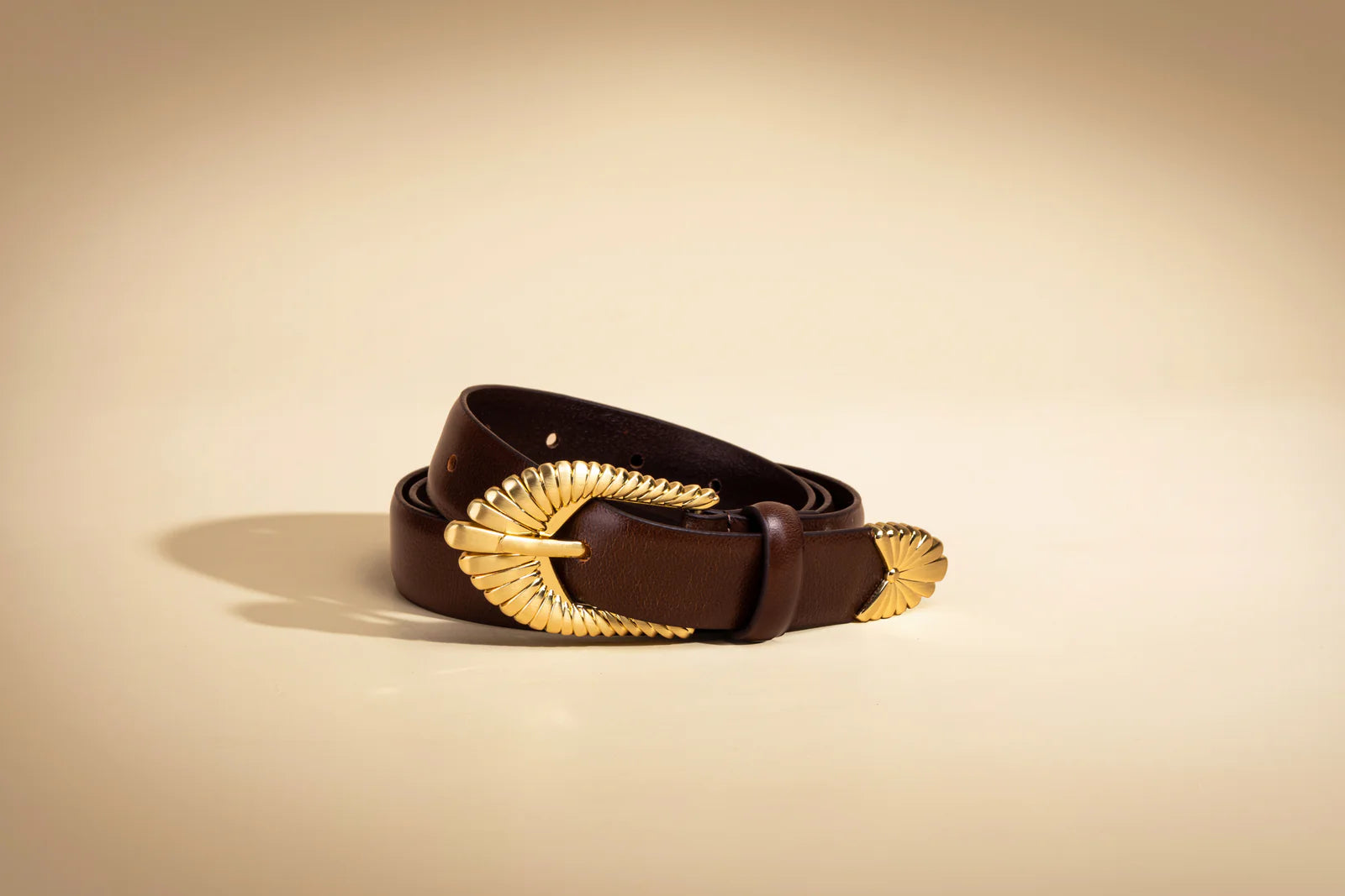 Inspired by beautiful blooming petals, the Zolna Belt is crafted to bring a statement to any outfit. The brushed gold buckle and belt end were custom designed in-house. SANCIA's belts are made to be worn season to season, so get creative with your styling and cherish this piece for years to come.