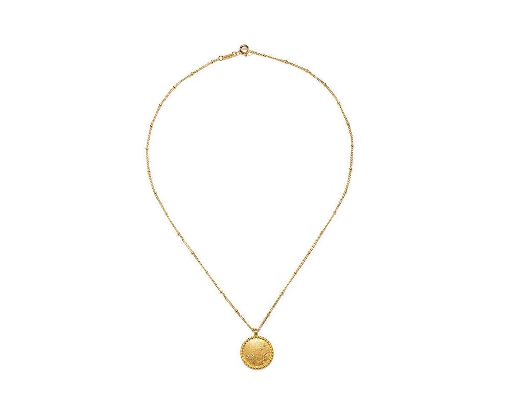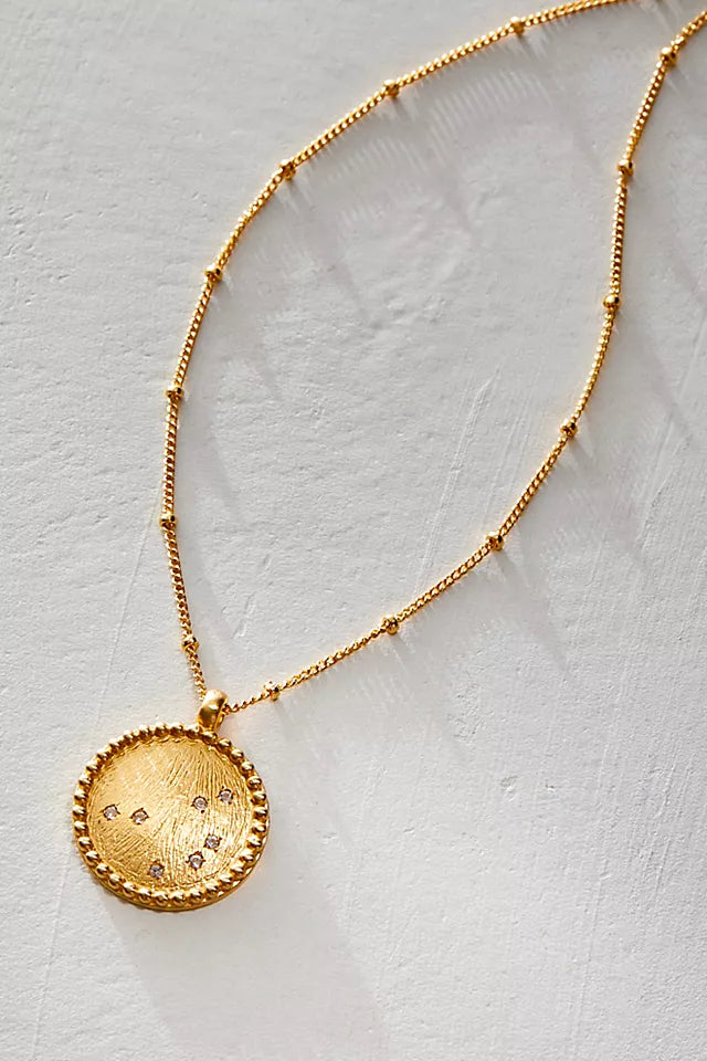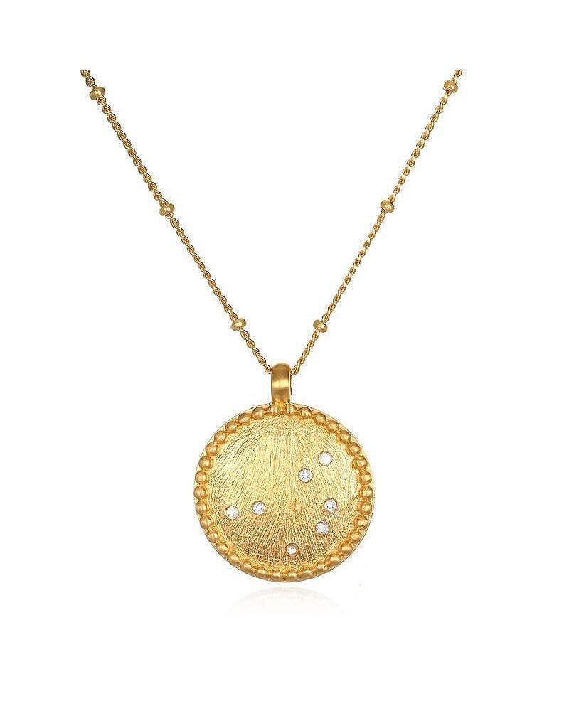We are all linked by our femininity; our shared sisterhood is an infinite source of uplift and strength. An 18k gold plated pendant necklace glimmers with white topaz stone of individuality, creativity and awareness in the design of the constellation Pleiades, or seven sisters known for their beauty and harmony.
