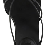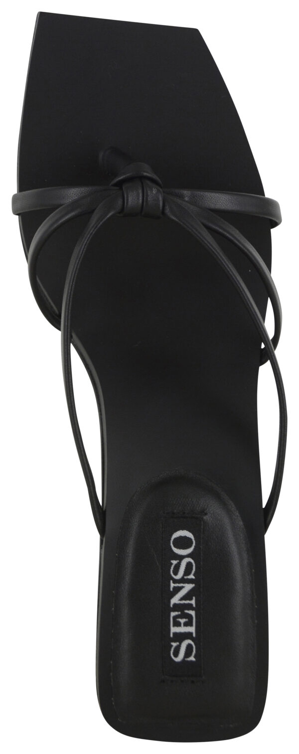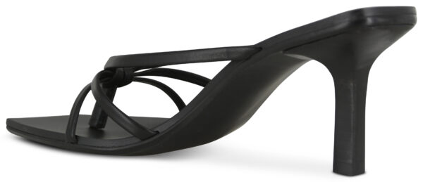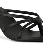 Ebony matte kid leather heeled sandals, featuring a branded insole, knot detailing and angled square toe.