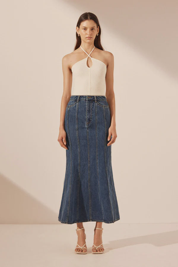This denim has been through a washing process to achieve its' indigo colour. Due to this process each garment is unique, and we cannot guarantee all garments to have the exact same colour shading.