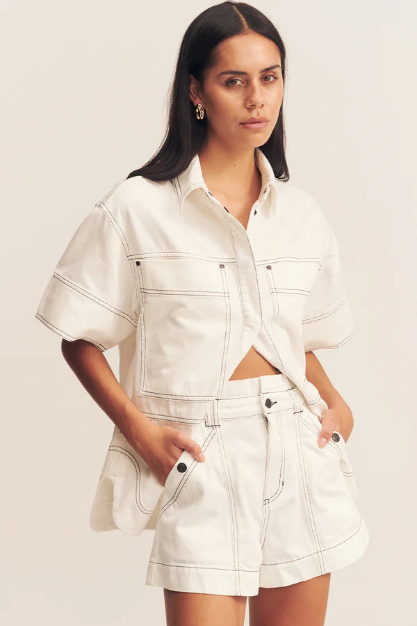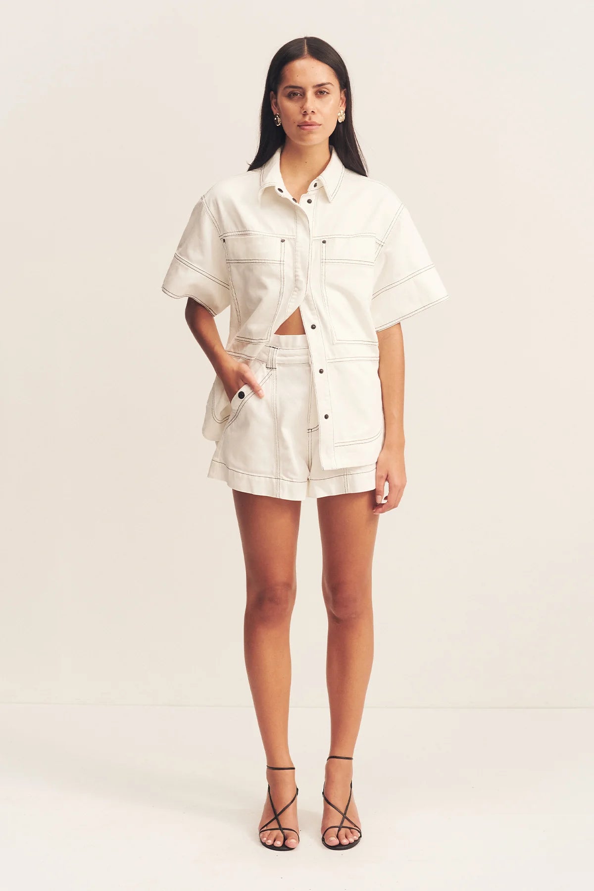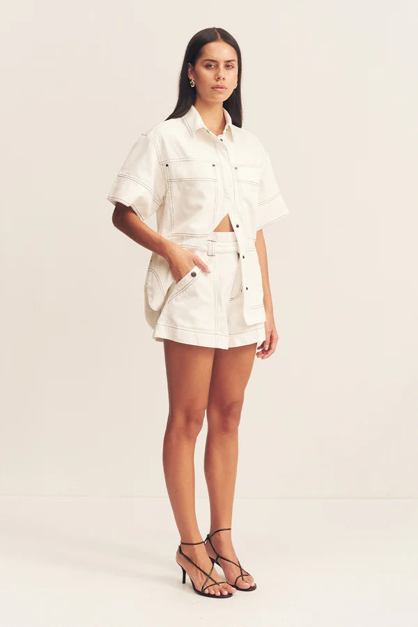 SHONA JOY - Hana High Waisted Flared Short - Ivory
