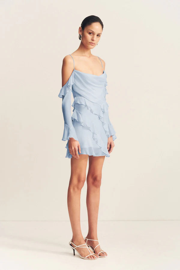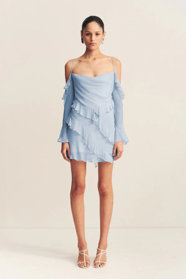 SHONA JOY - Layla Long Sleeve Ruffle Mini Dress - Sky