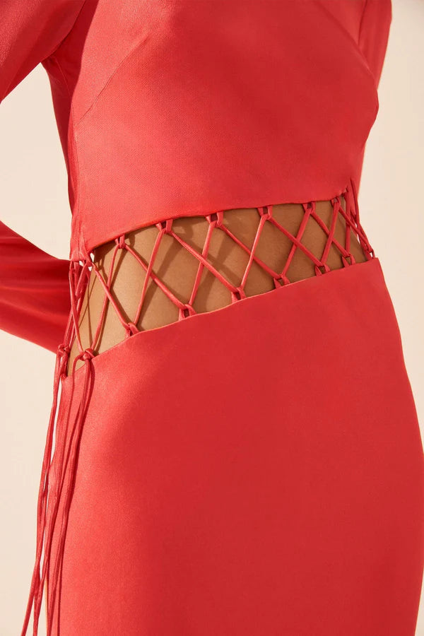 SHONA JOY - Lydie Asymmetrical Lace Up Dress - Poppy Red