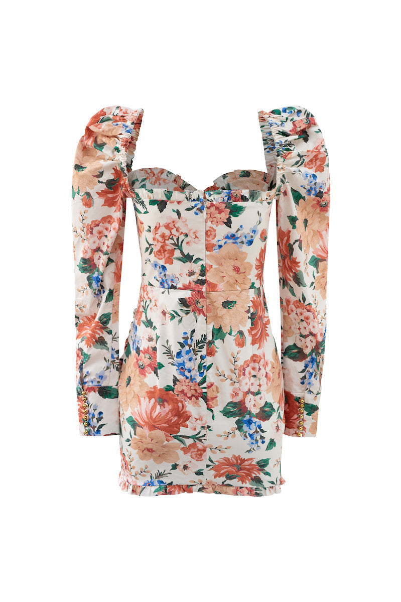 The alluring Dolce Dress fits and feels just as amazing as what it looks. Made from high - quality stretch cotton in our custom botanical print, the dress is panelled and pleated to support and highlight your curves. Finished with soft feminine frills throughout, the cross over skirt design and mid - thigh length create a stunning feminine silhoutte.