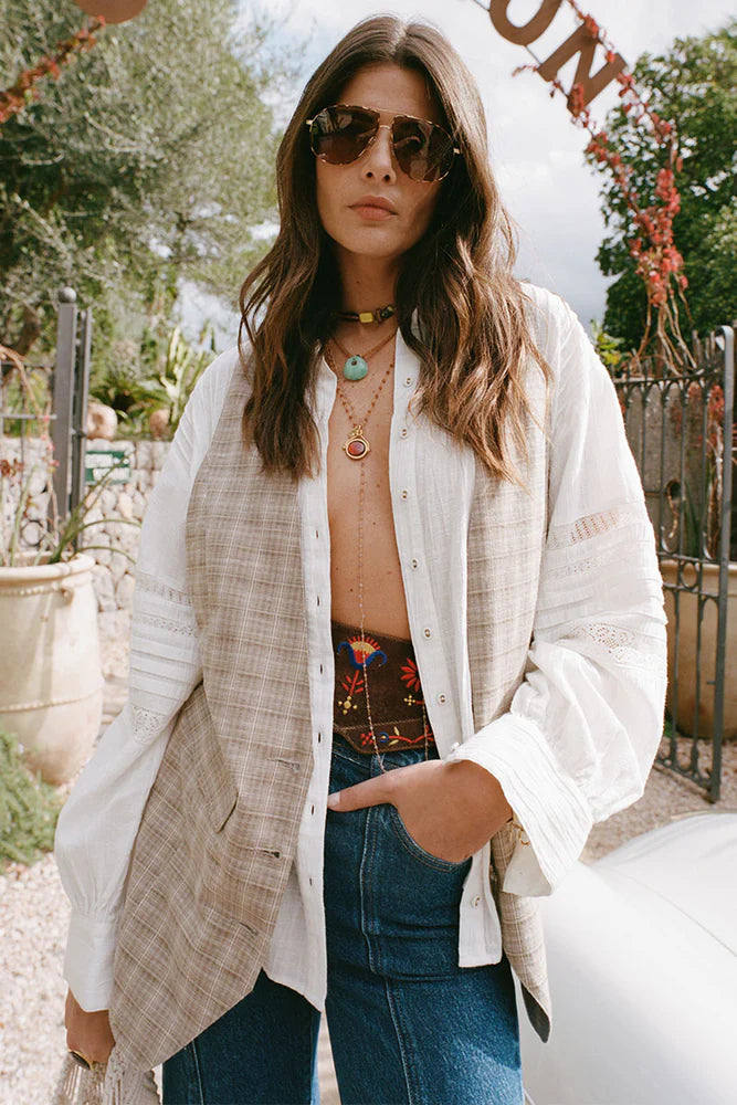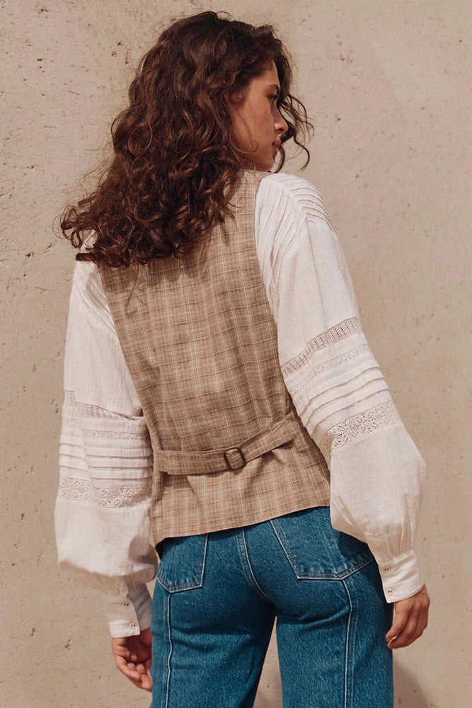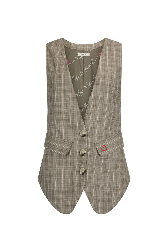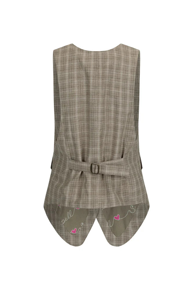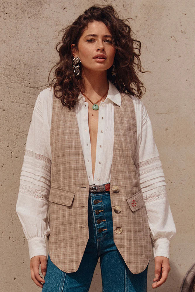 The Arizona Vest in Check is the perfect harmony of tailored chic and relaxed charm. Designed in a sustainable blend of Organic Cotton and Hemp, this single-breasted vest features a deep front neckline and low armholes for a flattering, modern silhouette. Front flap pockets and an adjustable back waist add both function and style, while placement customised embroidery lends a unique, artisanal touch.