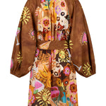 The Birth of Venus Tunic Dress in caramel blends playful charm with effortless style. Crafted from breathable linen and organic cotton, it features an elasticated neck and sleeve cuffs for easy, comfortable wear. Raglan sleeves and a self waist tie create a flattering silhouette, while the mini length adds a fun, flirty edge. Finished with a custom Spell print, this dress is perfect for carefree days with a touch of artistic flair.
