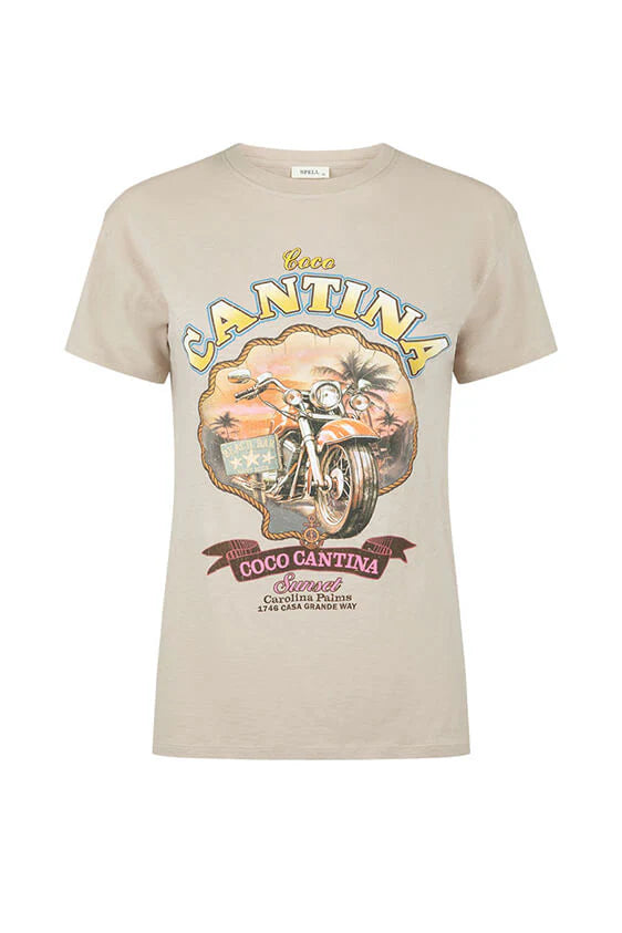 The Coco Cantina Biker Tee in Taupe channels bold, rebellious energy with its iconic slub cotton fabric and striking custom front print. Crafted from 100% organic Pima cotton, this tee offers a daring edge while ensuring supreme comfort and sustainability. Perfect for those who live unapologetically and embrace a fearless style.