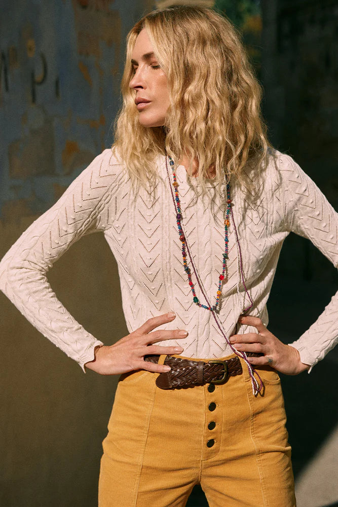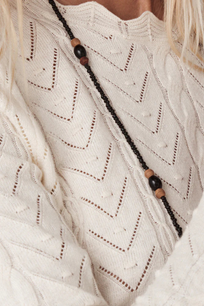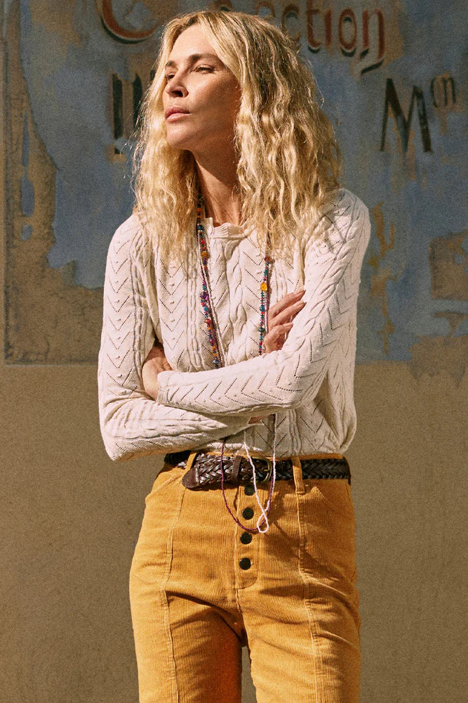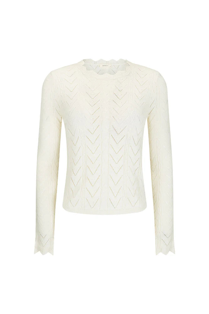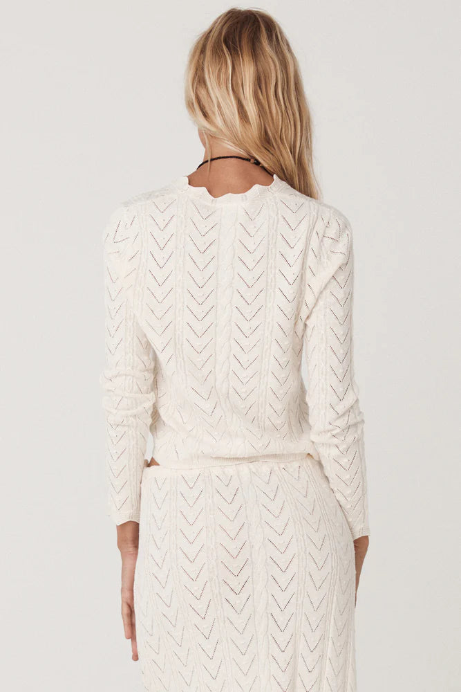 The Lou Lou Knit Top in Snow is chic and luxurious crafted from a gorgeous blend of organic cotton and linen. Featuring a stunning pointelle detail throughout with a delicate scalloped sleeve hem and neckline our top offers a sophisticated charm and timeless elegance. Pair with your favourite denim and boots for a cute coffee date or with the Lou Lou Knit Midi Skirt and clogs for cosy weekends in the hinterland.
