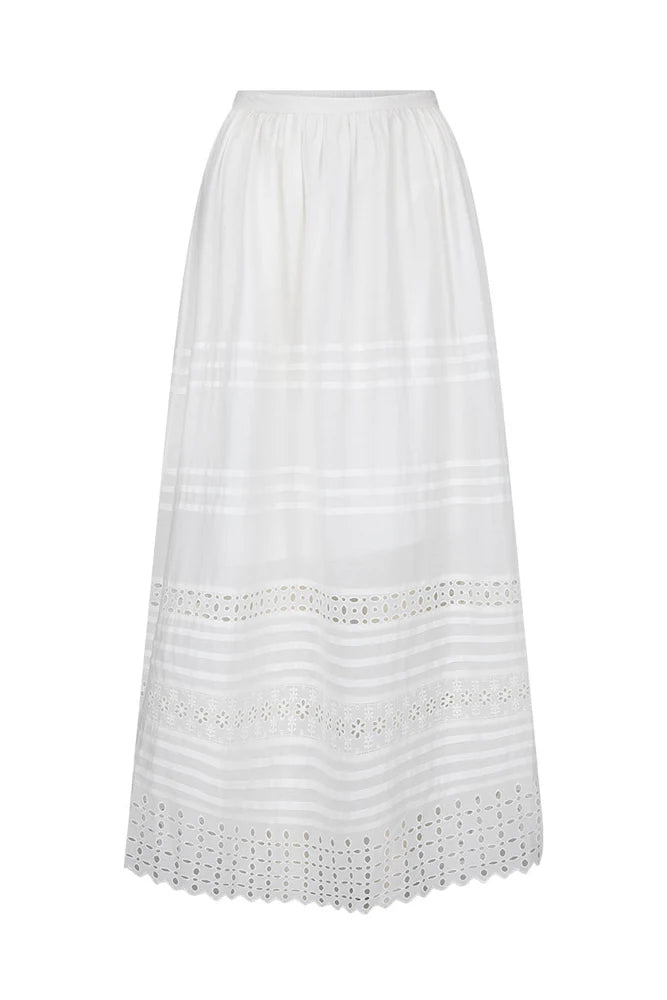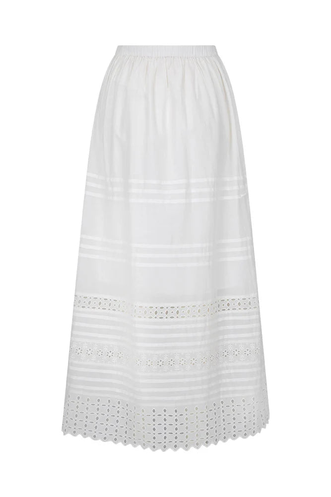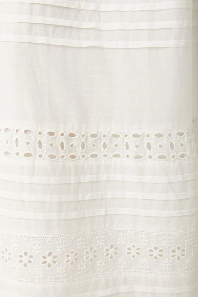Our Love in the Afternoon Lace Maxi Skirt in Daisy adds a touch of ethereal charm to your styling. Crafted from 100% Organic Cotton Voile, this skirt features intricate custom schiffli and broderie anglaise details. Gathers at the waist and pleats throughout add volume and drama, making it a sophisticated addition to your wardrobe. Designed as a timeless heirloom, our skirt has endless styling possibilities. Pair with a singlet and flat sandals for brunch with the girls, or with the Love in the Afternoon Lace Blouse and a strappy heel for something a little more elevated.