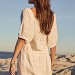 The Maiden Lace Mini Skirt in Antique White captures that perfect balance of playful charm and timeless grace. Featuring custom Anglaise with delicate inserted lace, this skirt channels vintage-inspired romance with a modern sensibility. The elasticated waist sits beautifully on the hips, creating a flattering silhouette, while the organic cotton voile lining ensures all-day comfort and movement. Breezy, feminine, and endlessly versatile—the skirt that makes every outfit feel like an adventure.