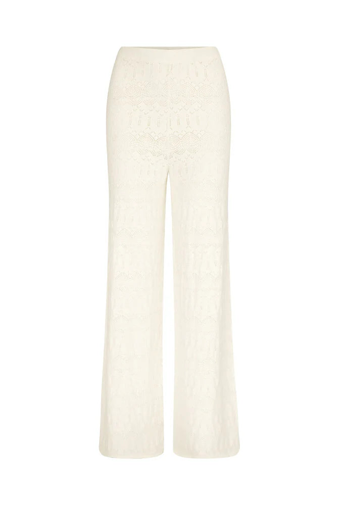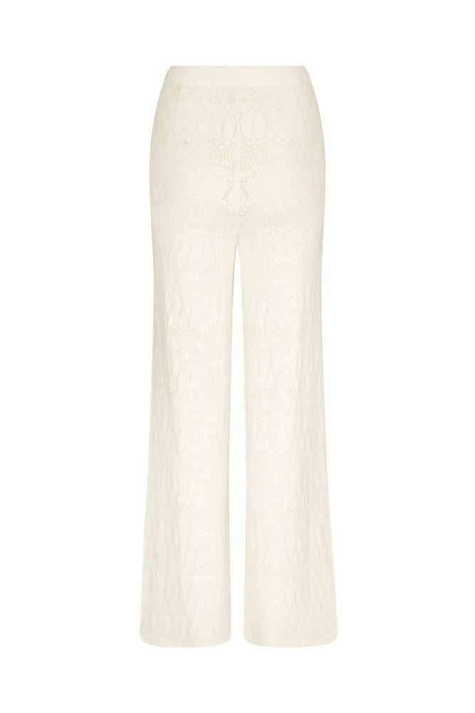 Unwind in style with the Siesta Pant in White Sand. Made with a blend of organic cotton, recycled cotton, linen, and nylon, these pants are both comfortable and eco-friendly. The elastic waist and pointelle knit pattern add a touch of whimsy, while the 1% elastane provides extra stability. Lounge in luxury without sacrificing sustainability.