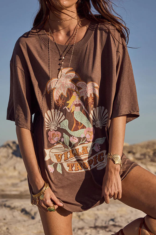 SPELL - Villa Tropic Oversized Biker Tee - Coffee