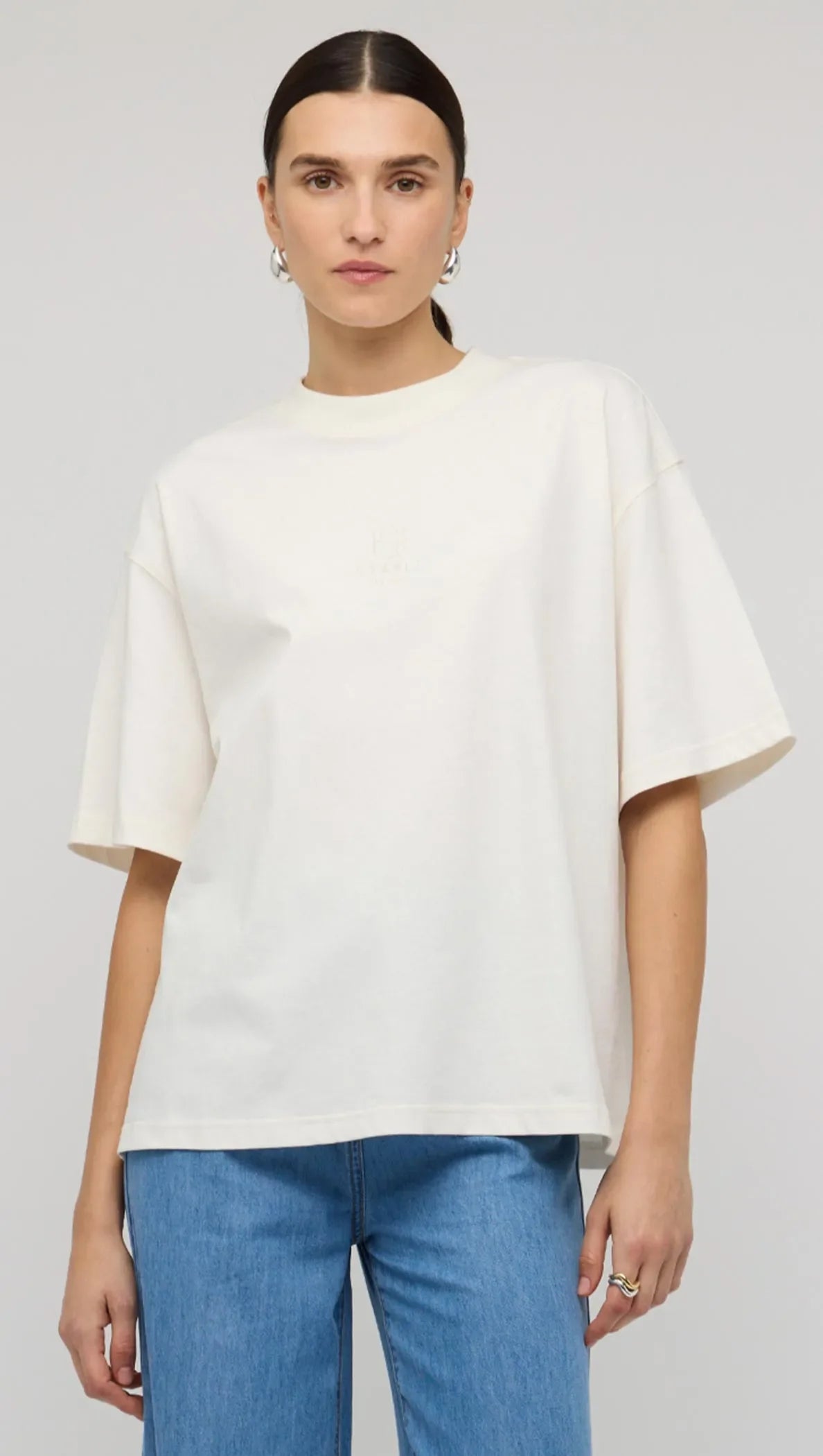 An everyday essential. The Staple Embroidered Logo Tee is an oversized, casual style featuring a minimalist embroidered logo, keeping things low-key and elevated. Made from soft, breathable cotton, it's your go-to for effortless outfitting. Wear it with denim, track pants or tailored trousers — this tee plays well with everything.