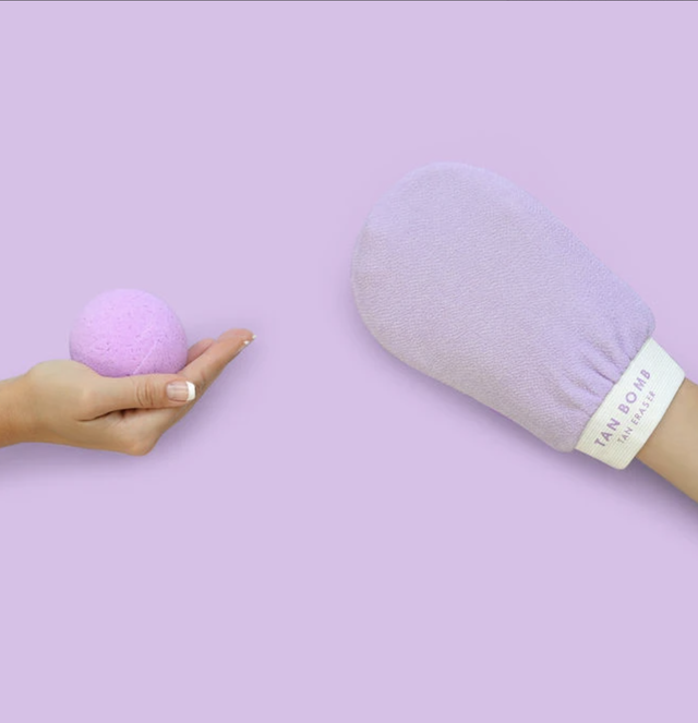 Transform your skin with the Tan Bomb Lilac Exfoliating Mitt ! Eliminate harsh scrubing and easily buff away self tan, dead skin and built up empurities with our uniquely woven mitt. Achieve buttery smooth, tan free skin with this amazing beauty tool.