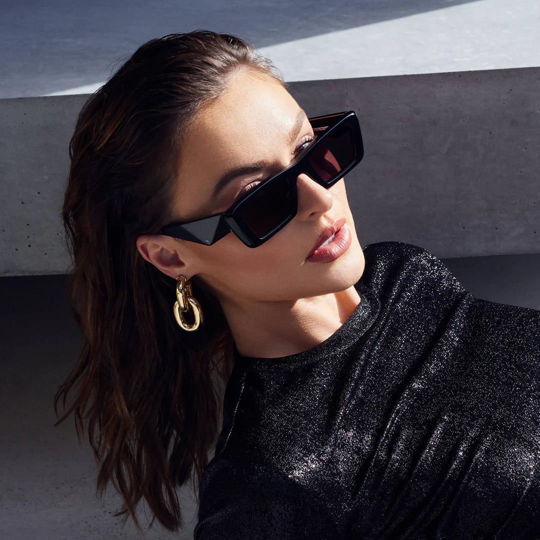 An edgy, low profile design with a thick and flat face. Featuring subtle edge bevels to soften the silhouette and signature bevelled temples for interest from all angles.