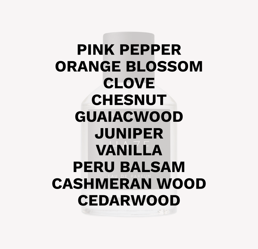 Sweet and playful, pure vanilla is balanced with the spicy unpredictability of pink pepper and clove, mellowed with spontaneity of peru balsam and decadent woody undertones.