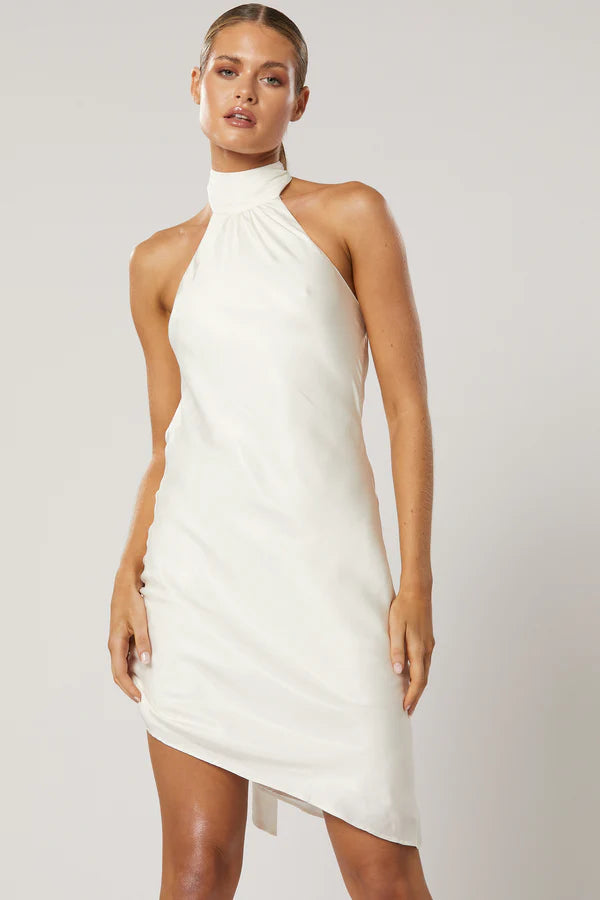 · Low open back with cowl drape. Elasticised back fasten with buckle clasp
