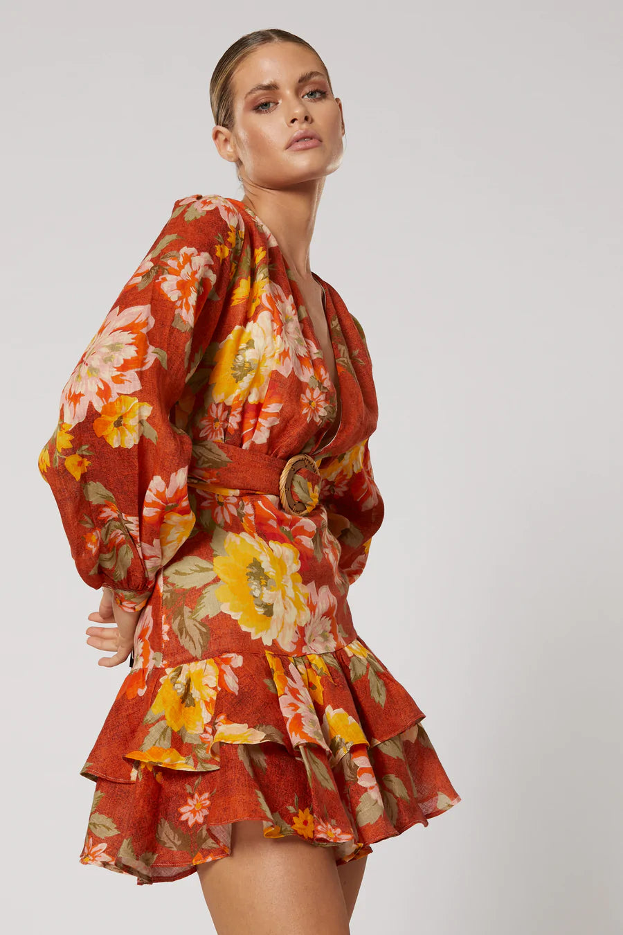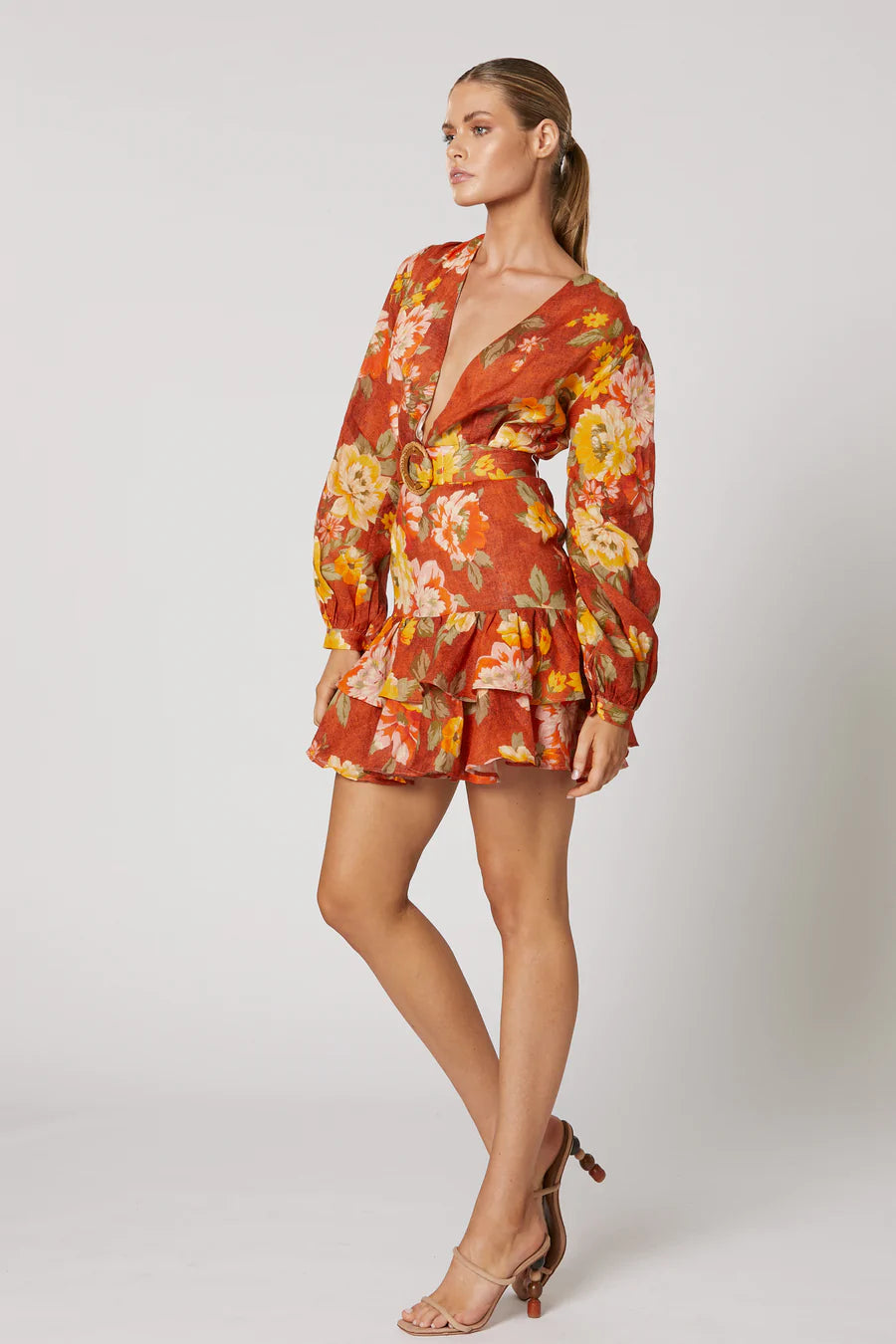 - Mini length with tiered frill hemline