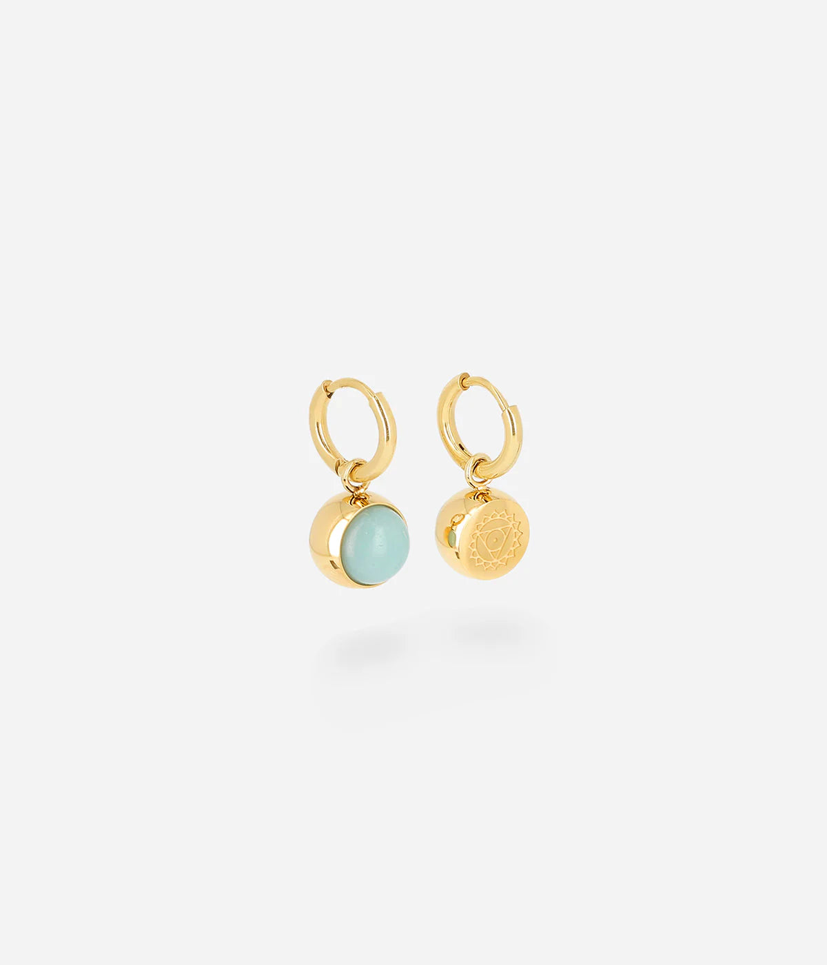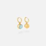 Small hoop earrings from which are suspended gold cabochon setting circles encasing a smokey quartz stone. Practical and elegant and can be worn with most outfits. Made from surgical grade stainless steel and ionised with gold.