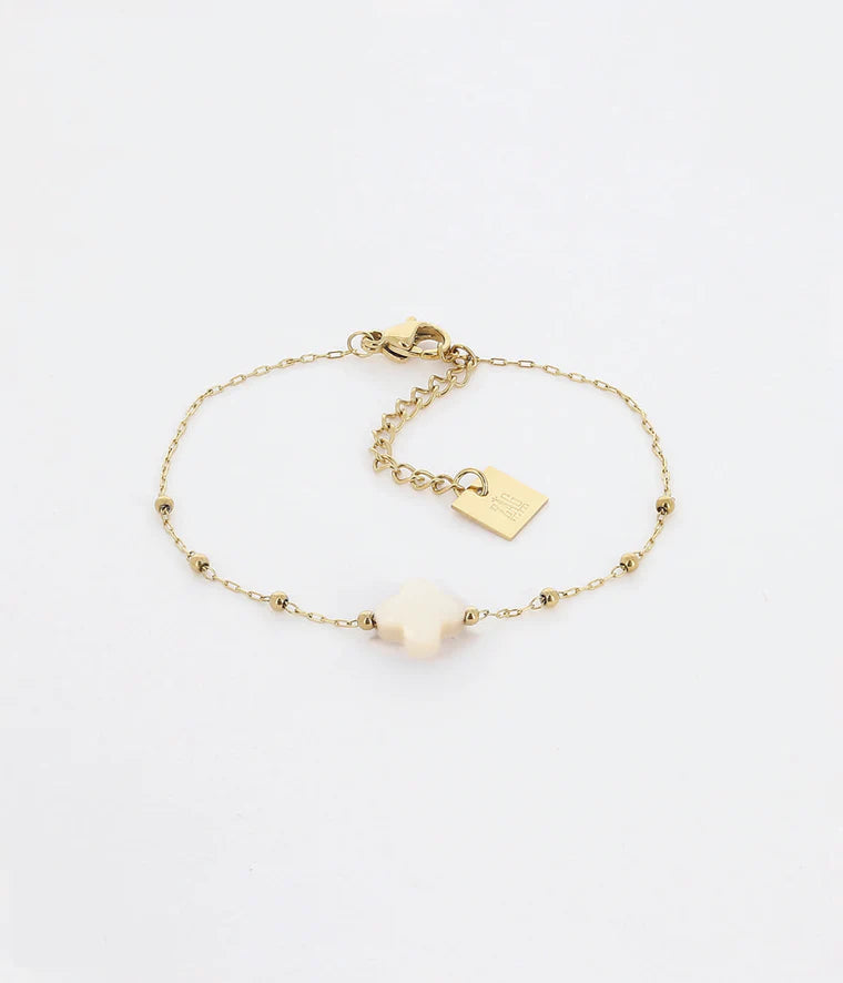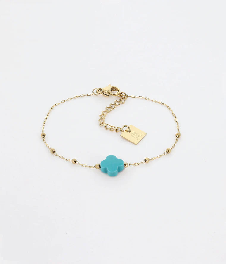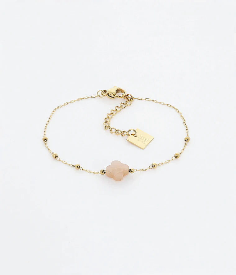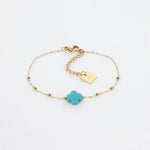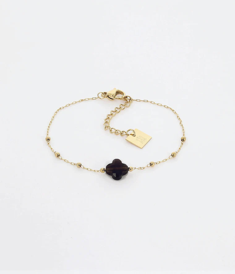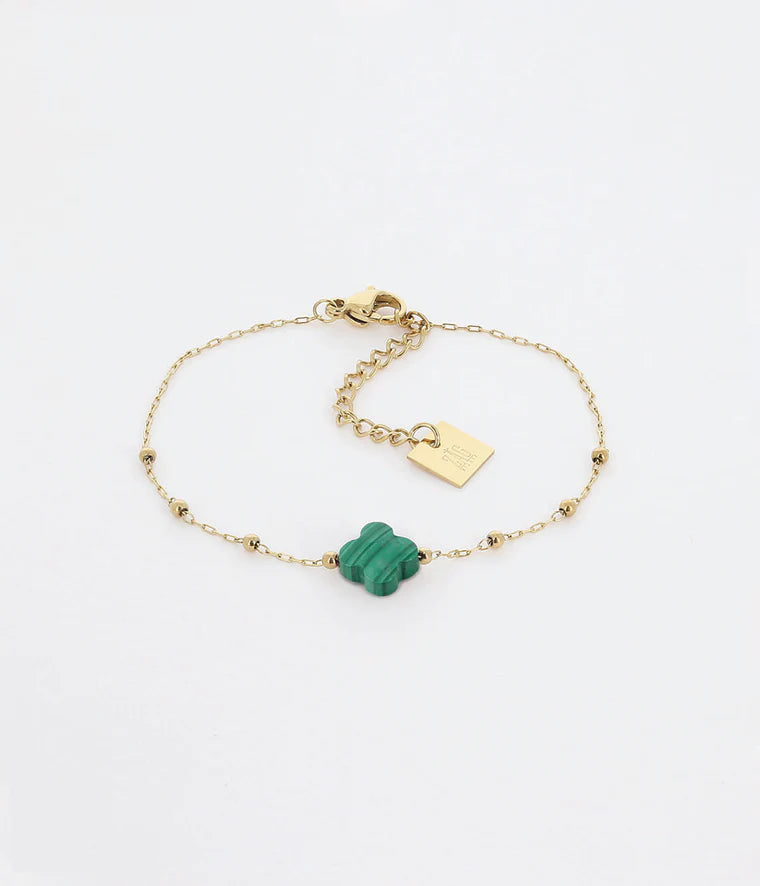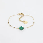 Chain bracelet featuring a faceted natural stone in the shape of a clover.